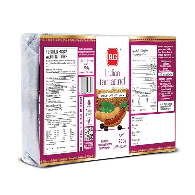 RG Tamarind brings the authentic tangy flavor of India to your kitchen. Carefully sourced and naturally sun-dried, it is rich in flavor and perfect for adding a zesty sweet-sour taste to many dishes. Ideal for chutneys, sauces, marinades, and traditional Indian recipes, RG Tamarind helps every meal deliver a burst of authentic and delicious flavor.